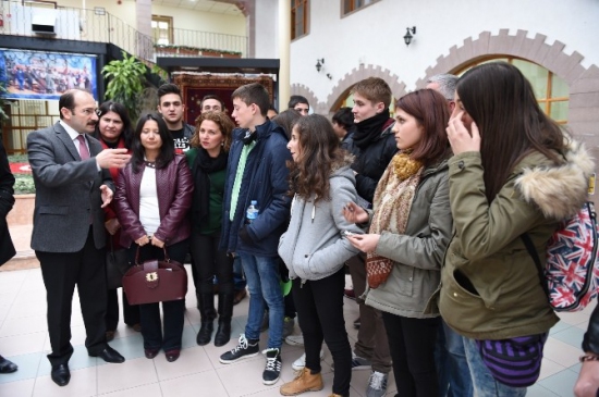 Öğrencileri Belediye Başkan Yardımcısı Hakan Uludağ karşılarken, ülkeler arası diyaloglarda öğrencilerin önemli olduğuna dikkat çekti.
