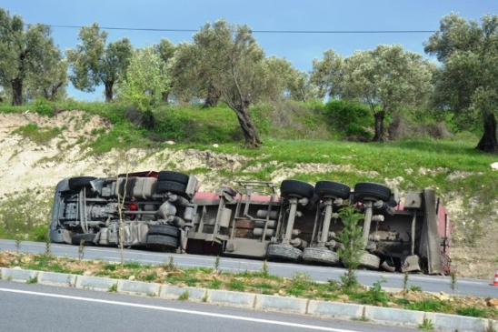 Balıkesir’in Gömeç ilçesinde meydana gelen bu tek taraflı kazada, sürücü Tuncay Yardımcı (46) kazayı yara almadan atlattı. Edinilen bilgilere göre, TIR, dün gece Gömeç istikametinden Ayvalık yönüne sefer yapıyordu. Bilinmeyen bir sebeple devrilen TIR’da ölen ya da yaralanan kimse bulunmadı. Olayla ilgili olarak yetkililerce tahkikat sürdürülmektedir.