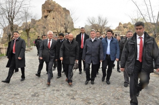 Makedonya Cumhurbaşkanı Gjorge İvanov, resmi bir program çerçevesinde Nevşehir'e geldi. Göreme Açık Hava Müzesi'ni ziyaret eden İvanov, burada Göreme Belediye Başkanı Nuri Cingil tarafından karşılandı. Cingil, Cumhurbaşkanı İvanov'a Göreme’nin kış manzarasını içeren bir tablo hediye etti. Cingil, Göreme'nin tarihi ve doğal güzellikler açısından zengin bir yer olduğunu belirtti. İvanov, müze içinde yer alan Elmalı, Yılanlı, Çarıklı ve Tokalı kiliselerini gezerek yetkililerden bilgi aldı. Ziyaret sonrası yaptığı açıklamada, Kapadokya’nın doğal güzelliklerine hayran kaldığını ifade eden İvanov, “Göreme gerçekten çok güzel bir yer” dedi. Heyet, müze ziyaretinin ardından Göreme'den ayrıldı.
