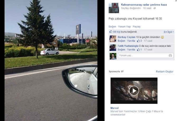 Kahramanmaraş il merkezinde ve ilçelerinde uygulanan radar sistemleri nedeniyle ceza alan sürücüler, sosyal medya platformunda dayanışma gösteriyor. 'Kahramanmaraş’ta radar çevirme kaza' isimli Facebook grubuna katılan sürücüler, karşılaştıkları radar noktalarını paylaşarak diğer üyeleri uyarıyor. 'Ceza yemeye son' sloganıyla hareket eden grup, 'Arkadaşlar kapıçam girişi dikkat', 'Piknikçi arkadaşlar hız limitlerine riayet ediniz' gibi mesajlarla dikkat çekiyor. Bu şekilde, radar uygulamalarına karşı bir önlem almayı amaçlıyorlar.