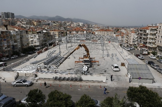 İzmir Büyükşehir Belediyesi ile Konak Belediyesi arasında imzalanan protokol çerçevesinde, Hatay Asker Hastanesi arkasında inşa edilen 329 araçlık katlı otopark ve pazaryeri için üst örtü montajı devam ediyor. Taşıyıcı demir iskeletin montajına başlandığı ve bu çalışmaların Mayıs ayı sonunda tamamlanacağı bilgisi verildi. Germe branda sistemi ile inşa edilen üst örtü tamamlandığında, 3 bin 180 metrekarelik bir alanda kapalı pazaryeri hizmet verecek.