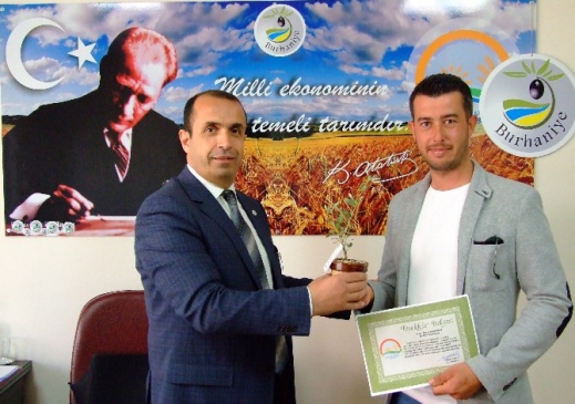 Balıkesir’in Burhaniye ilçesinde düzenlenen 8. Ulusal Naturel Sızma Zeytinyağı Kalite Yarışması'na katılan İnoliva markasının sahibi İnanç Erdoğan ile Balcatepe markasının sahibi Semra Aldağ, en iyi yağ ödülünü kazandı. İlçe Müdürü Erdal Aldağ, İnanç Erdoğan’ı makamında kabul ederek, başarısından dolayı kendisine teşekkür etti. Müdür Aldağ, ilçede kaliteli zeytinyağı üretiminin önemine vurgu yaptı ve bu alanda yoğun çaba harcadıklarını belirtti. Ayrıca, ödül kazanan zeytincilere minyatür zeytin ağaçları hediye ederek, başarılarının devamını diledi. Aldağ, Burhaniye zeytinyağının kalitesini tanıtmak amacıyla yürütülen kampanyalara da değindi.