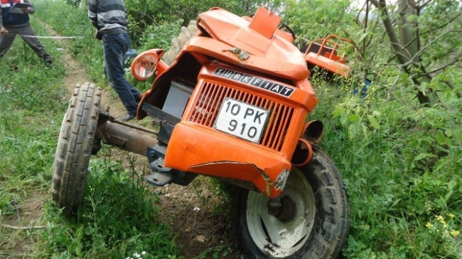 Balıkesir’in Erdek ilçesine bağlı Karşıyaka mahallesinde, şarampole devrilen traktörde bulunan 2 kişi ağır yaralandı. Edinilen bilgilere göre, O.S. yönetimindeki 10 PK 910 plakalı traktör, Kumlimanı mevkiindeki arazi yolunda ilerlerken bilinmeyen bir sebepten dolayı devrildi. Kazada sürücü O.S. ve kızı Z.S. (22) yaralandı. Yaralılar, olay yerine çağrılan ambulansla Bandırma Devlet Hastanesi’ne sevk edildi. İki yaralının sağlık durumlarının kritik olduğu bildirildi. Olayla ilgili soruşturma devam etmektedir.