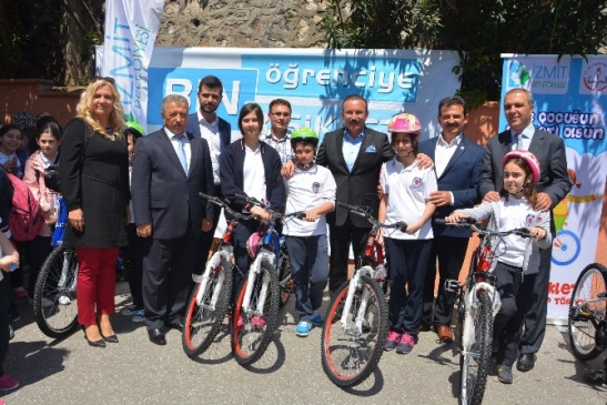 İzmit Belediyesi, "Bisiklet Şehri İzmit" projesi kapsamında öğrencilere bedava bisiklet dağıtımına devam ediyor. Proje çerçevesinde, Özel Seymen Ortaokulu'nda 111, Özel Doğa Koleji Ortaokulu'nda 93 ve 50. Yıl Cumhuriyet Ortaokulu'nda 206 öğrenciye bisiklet teslim edildi. Dağıtım törenine İzmit Belediye Başkanı Dr. Nevzat Doğan, Belediye Başkanvekili İbrahim Bulut, Belediye Meclis Üyesi Aykut Bozkur, okul müdürleri, mahalle muhtarları, okul aile birliği başkanları, öğretmenler, veliler ve öğrenciler katıldı.