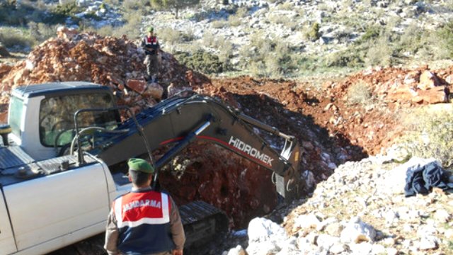 Alınan bir bilgi üzerine Erdemli ilçesi Merkez Mahallesi Sorgun mevkiinde ormanlık alan içerisinde M.A, H.K., N.Y., V.B., M.Ş.B., H.M., H.Ö., K.A., Ö.G., M.Ş., ve S.G. isimli şahısları kepçe ile kaçak kazı yaparken suçüstü yakalandı. Ekipler kepçeye el koydu, 11 kişiyi adliyeye sevk etti.