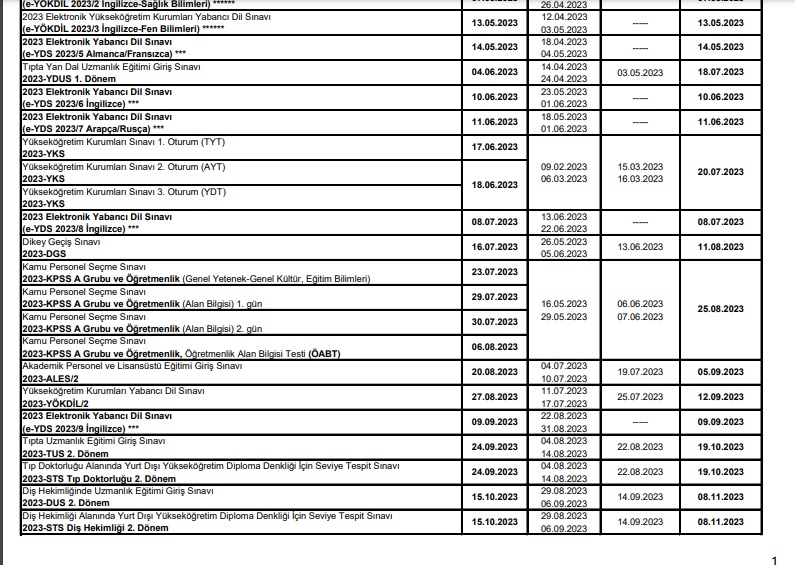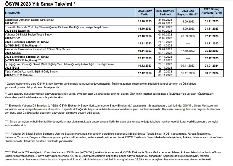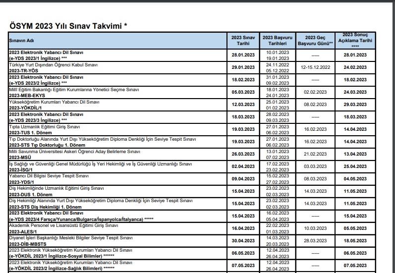 ÖSYM 2023 Yılı Sınav Takvimi belli oldu
