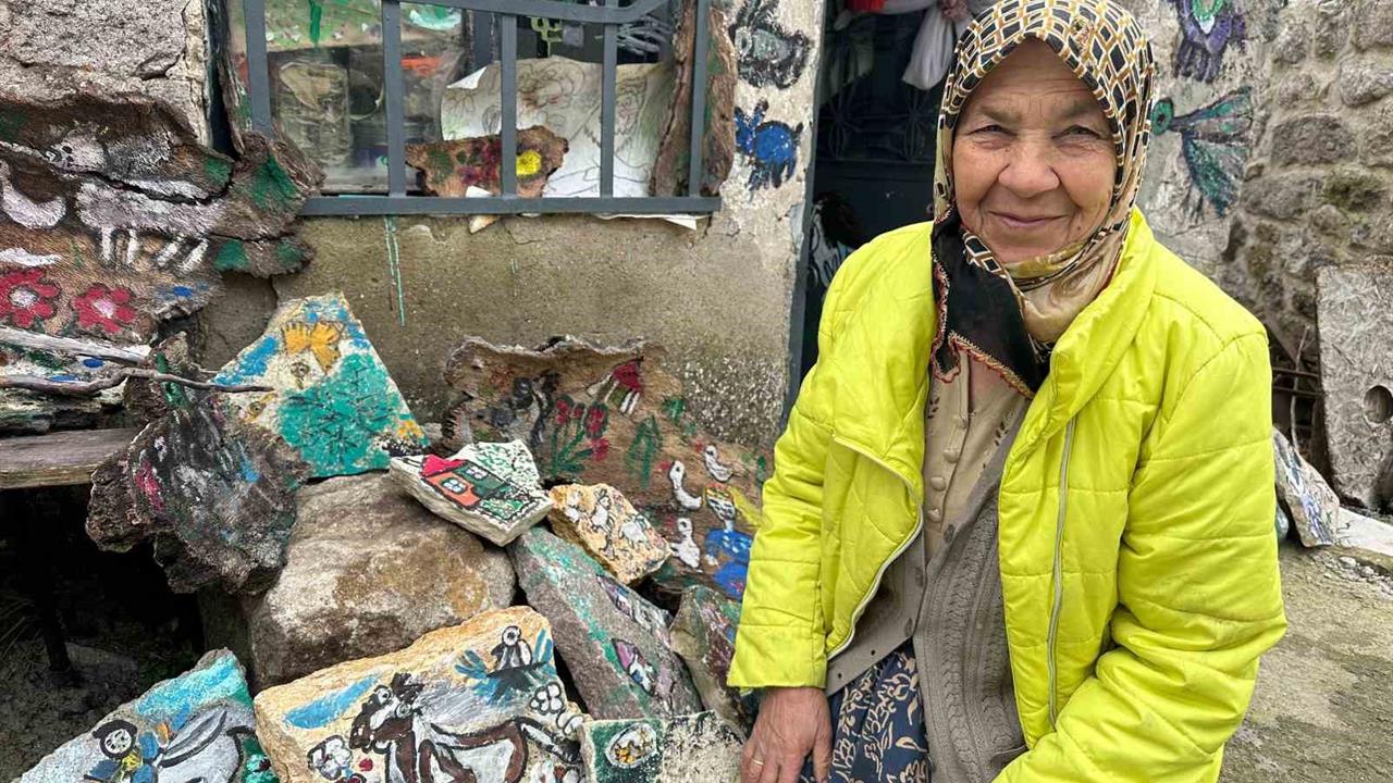 Ayvacık ilçesine bağlı 20 haneli Söğütlü köyünde yaşayan Hakime Pala Gürel, çocukluğundan beri dinlediği masal ve hikayeleri resimlerine aktarıyor. Okuma ve yazma bilmeyen Gürel, hayvan yetiştiriciliği yaparak geçimini sağlıyor. Çizdiği resimlerle dostluk kuran Gürel, 15 yıl önce eline aldığı kalem ve boyalarla hayatında gördüklerini tuvale yansıtıyor. Çocukken dinlediği masalların da resimlerine yansıdığı bu eserler, ziyaretçileri duygulandırıyor.