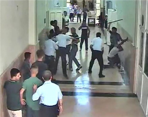 Gruptakilerin küfür etmesi içlerinden birinin de mahkeme duvarını yumruklaması üzerine polis, bu kişiyi copla etkisiz hale getirmek istedi. Bu sırada gruptakilerle polisler arasında coplu, tekmeli, yumruklu arbede yaşandı. Kavga anı güvenlik kameraları tarafına da yansıdı. Arbede sırasında yaralandıklarını öne süren 3 polis memuru, Orhan R., Mustafa R. ve Ali K.'dan şikayetçi oldu. Gözaltına alınan 3 kişi, 'görevli memuru mukavemet' suçlamasıyla gözaltına alınıp mahkemeye çıkarıldı ve tutuklandı.