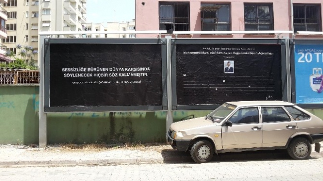 Adana'da ASKON, Mısır'ın eski Cumhurbaşkanı Mursi'nin idam kararını protesto etmek amacıyla bilboardlara afişler astı. Protesto, dünya genelinde sessiz kalanlara dikkat çekmeyi amaçlıyor.