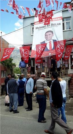 Milliyetçi Hareket Partisi (MHP) Adana milletvekili adayı Mehmet Ali Arslan, Pozantı ilçesi Kamışlı Mahallesi'nde seçim iletişim bürosunun açılışını gerçekleştirdi. Açılış sonrasında esnafı ziyaret eden Arslan, onların sorunlarını dinleyerek bir araya geldi. Arslan, "İl ve ilçelerimizde vatandaşlarımız, Milliyetçi Hareket Partisi’ne büyük bir teveccüh gösteriyor. İktidarın hala çeşitli bahanelerle vatandaşlarımızı oyaladığını görüyoruz. Milliyetçi Hareket Partisi olarak iktidara geldiğimizde hizmetler eşit ve adil bir şekilde dağıtılacaktır. Yolsuzluğa, adaletsizliğe, talana ve hırsızlığa dur diyeceğiz. Peygamber Efendimiz Hz. Muhammed’in (sav) buyurduğu gibi ‘Kızım Fatıma da çalsa, cezalandırırım’ düsturuyla hareket edeceğiz." şeklinde konuştu.