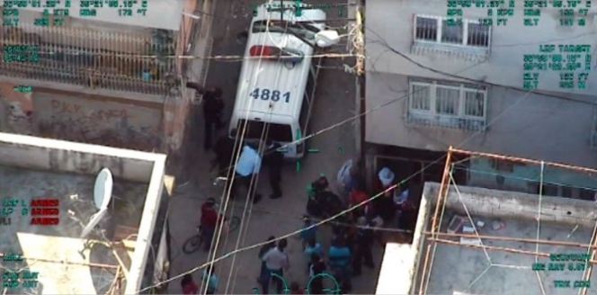 Polis, zanlıların kimliklerini belirleyerek Ramazan E. (20) ve Mahsun B. (21) olduğunu tespit etti. Zanlıların kaçtığı sokakta yapılan aramalar, evlerin bitişik olması nedeniyle zorluk yaşadı. Bunun üzerine devreye giren polis helikopteri, zanlıların kaçış yönündeki damlardan görüntü alarak, olay yerine yönlendirme yaptı. Helikopterin tespit ettiği hareketlilik üzerine, polis ekipleri iki evde operasyon düzenledi. Yapılan operasyonda iki zanlı yakalandı. Bu süreç helikopterin kamerasıyla kaydedildi.