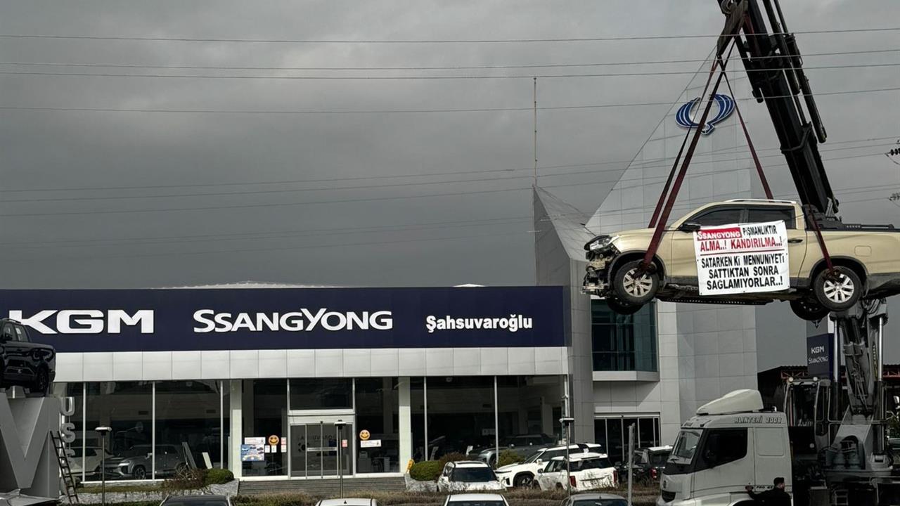 Firma, aracın 6 bin kilometre önce bakıma götürüldüğünü ve bakımda herhangi bir arıza tespit edilmediğini belirterek, motorda meydana gelen arızanın firmanın sorumluluğunda olduğunu savunarak ya tamir edilmesini ya da yeni bir motor verilmesini talep etti. Ancak SsangYong firması bu talebi kabul etmedi. Bunun sonucunda, aracın satın alındığı Kavaklı Mahallesi'ndeki SsangYong bayisine gelen firma yetkilileri, kamyoneti vinçle kaldırarak eylem yaptı. Eylem sırasında, kamyonetin üzerine "Alma, kandırılma. Satarken gösterilen memnuniyet, satıştan sonra sağlanmıyor" yazılı pankart asıldı. Bir süre sonra eylem sona erdi.