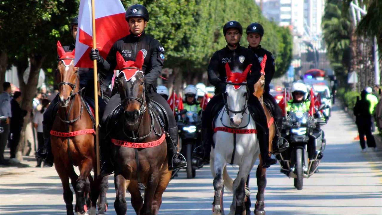 Adana Emniyet Müdürlüğü bünyesindeki atlı birlikler, trafik polisleri, devriye ve asayiş ekipleri, özel harekat polisleriyle birlikte korteje katıldı. Polis araçları, sirenler eşliğinde geçiş yaptı ve bu görsel şölen, polis helikopterinin havadan eşlik etmesiyle daha da etkileyici hale geldi.