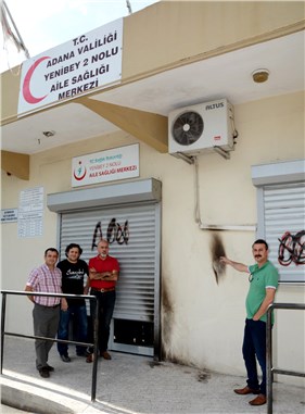 ADANA - Adana’nın merkez Seyhan ilçesindeki Yenibey Aile Sağlığı Merkezi, terör örgütü mensuplarının molotof kokteyli saldırısına uğradı. Adana Tabip Odası (ATO) üyesi bir heyet merkezde görevli hekim ve sağlık çalışanlarını ziyaret ederek, geçmiş olsun dileklerini iletti.