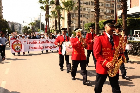 Adana'da, trafik kurallarına dikkat çekmek amacıyla bir yürüyüş düzenlendi. Trafik ve İlkyardım Haftası etkinlikleri çerçevesinde gerçekleştirilen etkinliğe kent protokolü, ilkyardım ekipleri, öğrenciler ve polisler katıldı. Yürüyüş, Atatürk Parkı'nda yapılan bir törenle başladı. Törende, Vali Yardımcısı Cengiz Horozoğlu, Atatürk Anıtı’na çelenk bıraktı, ardından saygı duruşunda bulunuldu ve İstiklal Marşı okundu. Yürüyüşte öğrenciler ve protokol üyeleri, ‘Emniyet kemeri tekerlekli sandalye kadar bağlayıcı değildir’, ‘Emniyet kemeri yaşam yüzdesini artıran bağdır’, ‘Biraz geç kalmak sakat kalmaktan iyidir’ ve ‘Aşırı hız ölüme yakın olmaktır’ yazılı dövizler taşıyarak Atatürk Caddesi üzerinden Uğur Mumcu Meydanı’na yürüdü. Etkinlik sonunda, motosikletli trafik polisleri, öğrencilerle fotoğraf çektirip, onlara küçük bir gezinti imkanı sundu.