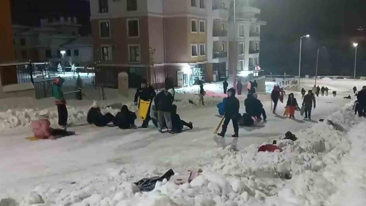 Yenişehir Deprem Konutları'nda, kar yağışıyla birlikte ortaya çıkan renkli görüntüler dikkat çekti. Hem çocuklar hem de yetişkinler, kaymak için hazırladıkları kızaklarla yokuşlardan kaydılar. Çocuklar, profesyonel kızakların yanı sıra evlerinden getirdikleri naylon poşetleri ve kendi yaptıkları kızaklarla kayarak eğlencenin tadını çıkardı. Dondurucu soğuğa aldırış etmeden saatlerce dışarıda kalan çocuklar, bu anların keyfini çıkardılar.