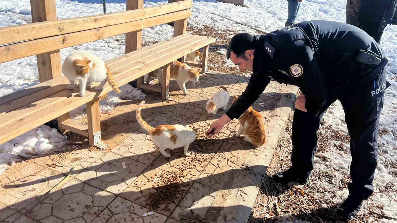 Adıyaman'ın Gölbaşı ilçesinde, İlçe Emniyet Müdürlüğü'ne bağlı Toplum Destekli Polislik Büro Amirliği ekipleri, birkaç gündür devam eden kar yağışı sonrası sokak hayvanlarının ihtiyaçlarını karşılamak için harekete geçti. Kış şartlarının zorlu geçmesi nedeniyle özellikle sokak hayvanlarının beslenmesi için mama ve yem bırakma çalışması yapıldı. Bu bağlamda, polis ekipleri, hayvanların soğuk havada aç kalmamaları için belirlenen noktalara yiyecek bıraktı. Üstelik, ekipler bu tür etkinliklerin süreklilik arz edeceğini ve sokak hayvanlarının korunmasına yönelik daha fazla çalışma yapacaklarını ifade etti.