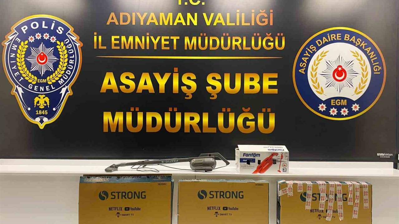 Adıyaman İl Emniyet Müdürlüğü Asayiş Şube ekipleri, son dönemlerde kent genelinde artış gösteren hırsızlık vakalarına karşı önlem almak amacıyla kapsamlı bir çalışma başlattı. Yürütülen araştırmalar ve teknik takipler neticesinde, belirlenen eşkallere sahip 2 şüpheli, düzenlenen bir operasyonla yakalandı. Şüphelilerin ikametlerinde yapılan aramalar sonucunda 6 adet televizyon ve 3 adet elektrikli süpürge ele geçirildi. Gözaltına alınan şüpheliler, emniyetteki işlemlerinin ardından Adıyaman adliyesine sevk edildi. Şüphelilerden 1'i adli makamlarca tutuklanarak cezaevine gönderilirken, diğer şüpheli adli kontrol şartıyla serbest bırakıldı.