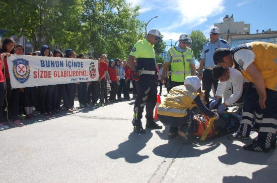 Adıyaman'da, 2-10 Mayıs Trafik Haftası etkinlikleri çerçevesinde, İl Emniyet Müdürlüğü Trafik Denetleme ve Şube Müdürlüğü tarafından kaza tatbikatı düzenlendi. Tatbikat, Adıyaman Valiliği bahçesinde yapıldı. Hurdaya ayrılmış bir otomobilin içerisine yerleştirilen bir kişi ile kaza anı canlandırıldı. Fatih Mesleki ve Teknik Kız Meslek Lisesi öğrencileri, tatbikata katılarak kazanın iç yüzünü gözlemledi. Öğrencilerin, “Bunun içinde siz de olabilirsiniz” yazılı pankartı dikkat çekti. Tatbikatta yaralanan sürücüye, olay yerine gelen 112 sağlık ekipleri tarafından ilk yardım müdahalesi yapıldı ve ardından ambulansla hastaneye sevk edildi. Trafik ekipleri, kaza yerinde güvenlik önlemleri aldı. Tatbikatın ardından öğrenciler, polisler ve sağlık çalışanları hatıra fotoğrafı çektirdi.