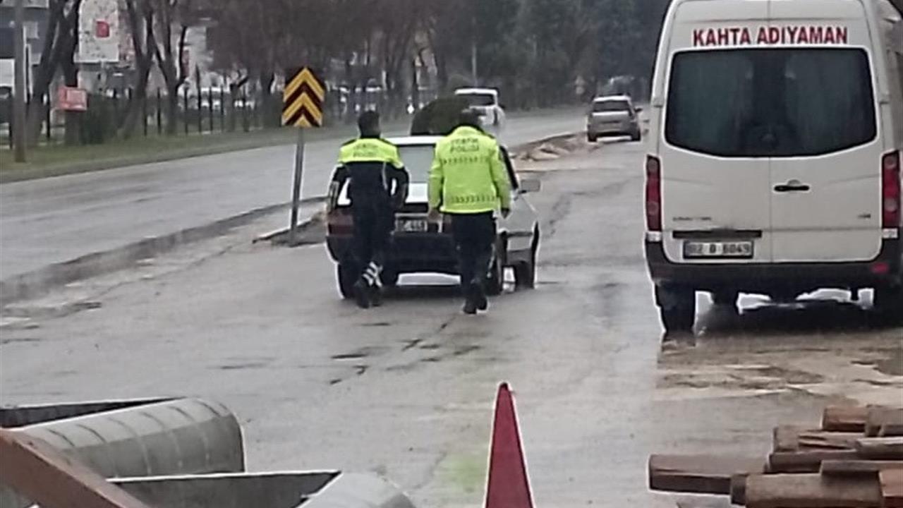 Adıyaman kent merkezinde, Atatürk Bulvarı üzerinde seyir halindeyken yolda kalan bir otomobil dikkat çekti. Arızalanarak hareket edemeyen aracı fark eden trafik polisleri, durumu hemen değerlendirdi ve sürücünün yardımına koştu. Ekipler, yağışlı havaya rağmen hızla olay yerine intikal ederek, aracın arkasına geçip güvenli bir şekilde yol kenarına çekilmesine yardımcı oldu.