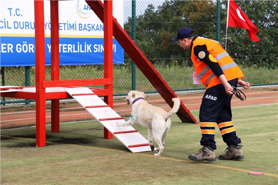 Toplam 36 köpeği katıldığı sınavda başarılı olanlara, enkazlarda canlı araması yaptırılabilmelerini sağlayacak sertifika verilecek. AFAD tarafından iki yılda bir düzenlenen 'Köpekli arama timi yeterlilik sınavı' bu yıl Samsun'da Ondokuz Mayıs Üniversitesi'nin Kurupelit Kampüsü'nde düzenlendi. Köpekli Arama Timi Çalışma ve Sınavı Yönetmeliği gereğince yapılan sınavın ilk gününde 9 köpek hazırlanan parkur alanındaki sınava eğiticileriyle birlikte katıldı.