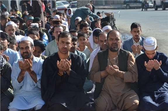 Namaz öncesi halka hitap eden Merkez Camii imamı Kurban Bayramı'nın, huzur ve birlik bayramı olduğuna işaret etti. Cemaat, camilerin dolması üzerine avlu ve bahçeleri de doldurdu. Sıkı güvenlik önlemleri altında kılınan bayram namazı sonrası dışarı çıkan Afgan halkı, geleneksel hale gelen ve yıllardır devam eden toplu bayramlaşma törenine katıldı.
