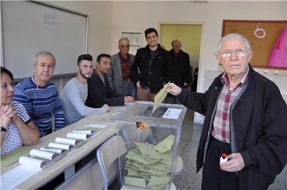 AFYONKARAHİSAR - Afyonkarahisar’da 495 bin 474 seçmen kentte bin 766 sandıkta oy kullanılıyor. Geçmiş seçimlere göre katılımın yüksek olduğu, her yaş grubundan seçmenin sandığa gittiği görülüyor. Sandıkların bulunduğu noktalarda polisin güvenlik önlemleri dikkat çekiyor. Yaşlı ve engellere sandık görevlileri tarafından yardımcısı olunuyor. Polis telsizinden oy kullanırken fotoğraf çekenlerle ilgili ikaz anonsu yapılıyor. Sandıklarda görevlilerin yanı sıra partilerin ve bağımsız adayların müşahitleri de hazır bulunuyor. Ayrıca bu seçimlerde bazı avukat da olası bir hileye karşı gönüllü olarak görev yapıyor.