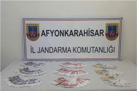 Afyonkarahisar İl Jandarma Komutanlığı'ndan edinilen bilgilere göre, jandarma ekipleri Isparta'dan Dinar ilçesine sahte para getirileceği yönünde istihbarat aldı. Bu doğrultuda düzenlenen operasyonda, L.Ö., Ö.Ö., N.K. ve İ.A. isimli şahısların bulunduğu bir otomobil Dinar'ın Dikici Köyü mevkiinde durduruldu. Araçta yapılan aramada, 1.031 banknot halinde toplamda 33 bin 300 sahte İngiliz Sterlini ele geçirildi. Gözaltına alınan şahısların işlemlerinin ardından adliyeye sevk edildiği bildirildi.