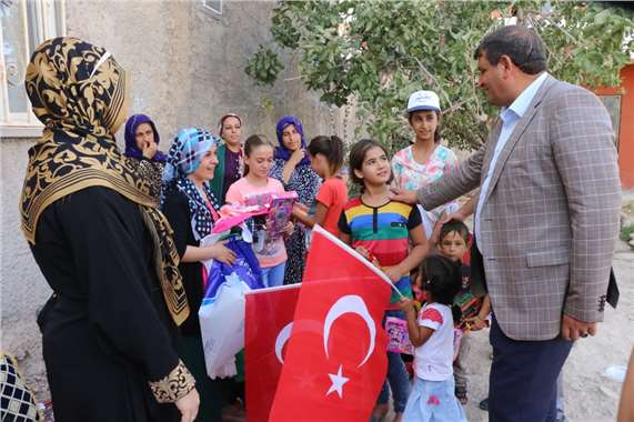 Daha önce belediye personelleri tarafından belirlenen çocuklar için hazırlanan bayramlıklar Akçakale Belediye Başkanı Abdulhakim Ayhan, Eşi Ayşenur Ayhan ve Ankara Büyükşehir Belediyesi Araştırma Tanıtım ve Belediye İçi Ulaşım Hizmetleri Daire Başkanı Recep Tezcan’la beraber belirlen adreslere tek tek giderek öksüz ve yetim çocuklara bayramlık giysi, oyuncak, ailelerine ise gıda ve temizlik kolileri teslim ettiler.