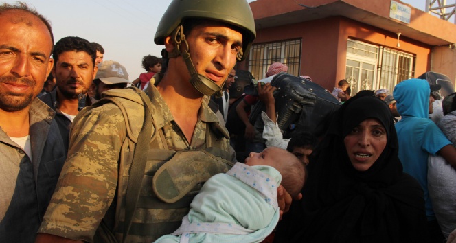 Suriye'nin Telabyad kentinden kaçarak Türkiye'ye ulaşan on binlerce Suriyeli, sınırdan minibüslerle Akçakale Gümrük Kapısı sahasına getirildi. Asker ve polislerin oluşturduğu koridordan yürüyerek geçen Suriyelilerin Türkiye topraklarına girdiklerinde ilk istekleri su oldu. Askerlerin ikram ettiği suyla serinleyen Suriyelilerin yaşadıkları ise duygusal anlara sahne oldu. Özellikle hasta ve bebeklere Mehmetçik sahip çıkarak, yürüyemeyen yaşlılara yardım etti ve bebekleri kendileri taşıdı.