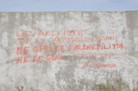 Akçakoca Balıkçı Barınağı'nda bulunan duvar yazısı, özellikle yerli turistlerin dikkatini çekiyor. Yazıda, "Laz akli işte, ters yapmışız limanı, Ne gemiler dinlenebiliyor, nede gönül yorgunları" ifadeleri yer alıyor. Bu yazı, barınakta yaşanan sorunları ve fırtınaların neden olduğu zararları vurguluyor. Yıllar içinde birçok balıkçının zarar gördüğü bu limanın durumu, ziyaretçileri düşündürüyor. Kim tarafından yazıldığı bilinmeyen bu duvar yazısı, limanın geçmişi hakkında da bir sorgulama yapıyor.