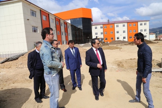 Bozok Üniversitesi Rektörü Tamer Uçar, Akdağmadeni ilçesinde inşaatı devam eden Sağlık Yüksekokulu'nda incelemelerde bulundu.