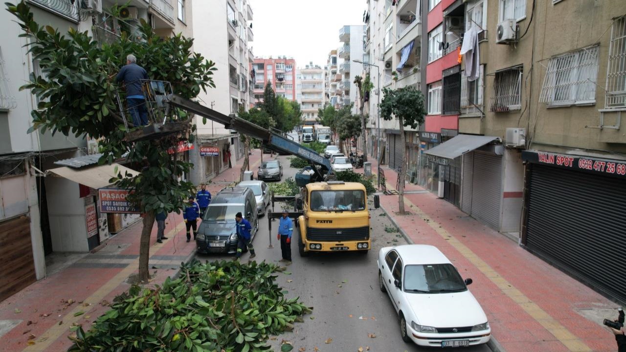 Hafta sonu gerçekleşen çalışmaya, Motorize Emniyet Güçleri ile Akdeniz Zabıta Müdürlüğü ekipleri de destek verdi. Çalışma öncesi sokak araç trafiğine kapatılıp çevrede güvenlik önlemi aldı. Ardından başlayan çalışmalarda Park ve Bahçeler Müdürlüğü görevlileri, 3 kovalı araç, kepçe, traktör ve kamyonlar yardımıyla 5338 sokak boyunca uzanan onlarca ağacı budadı. Ortaya çıkan dal ve yapraklar da personel tarafından kepçe yardımıyla toplanıp kamyon ve traktöre yüklendi ve mahalleden çıkarıldı.