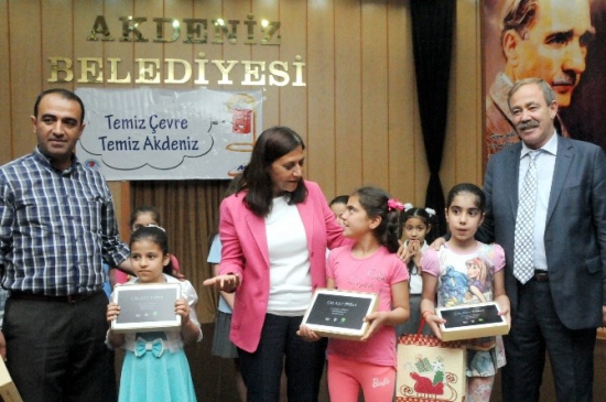Akdeniz Belediyesi ve Aktepe Grup'un ilkokullara yönelik başlattığı 'Temiz Çevre Temiz Akdeniz' eğitim programı, resim yarışmasıyla sona erdi. Program, çevre bilincini artırmak amacıyla 9 ilkokulda gerçekleştirildi. Proje kapsamında, 'Kutiko' adlı karakterle öğrencilere çevre temizliği öğretilerek, doğa ve temizlik konularında bilinçlendirme hedeflendi. Yarışmaya katılan 54 okuldan dereceye girenlere ödülleri, Akdeniz Belediyesi konferans salonunda düzenlenen törenle verildi. Törende konuşan Eş Başkan Yüksel Mutlu, çevre koruma konusunda ciddi adımlar atılması gerektiğini vurguladı. Yarışmada, her bölgeden ilk dört sırayı alan toplam 12 öğrenci tablet bilgisayar kazandı. Ödül töreninin ardından katılımcılara kokteyl ikram edildi ve dereceye giren öğrencilerin resimleri sergilendi.
