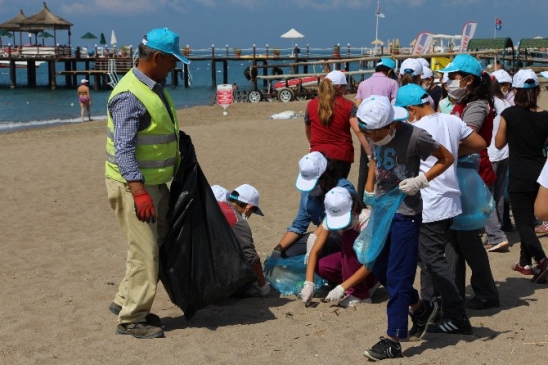 Aksu Belediyesi, “Temiz Çevrem Kampanyası” çerçevesinde Aksu İlkokulu öğrencileriyle birlikte halk plajlarında temizlik çalışması yaptı. “Temiz bir dünya bizim elimizde” sloganıyla hareket eden öğrenciler, temizlik yaparken çevre bilincine dair mesajlar da verdiler.