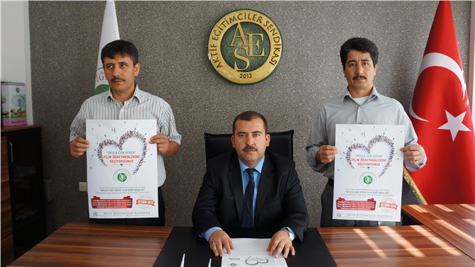 DENİZLİ - Aktif Eğitimciler Sendikası (Aktif Eğitim-Sen) Denizli Şube Başkanı Aydın Karaca, okulunda faydalı, başarılı, özgün ve kamuoyunun ilgisini çeken faaliyetler yapan öğretmenleri belirlemek, topluma tanıtmak, teşvik etmek ve ödüllendirmek amacıyla “Okula Can Veren Yılın Öğretmenleri” seçimi yapacaklarını söyledi. Yarışmaya, "www.aktifegitimsen.org.tr" adresinde bulunan aday formunu, 28 Eylül-25 Ekim 2015 arasında doldurularak müracaat edilebileceğini belirtti.