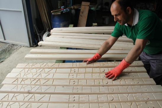 Akyazı Belediyesi Park ve Bahçeler Müdürlüğü tarafından belirlenen alanlarda kullanılmak üzere, kamelya, oturma bankları ve diğer ağaç işleme ürünleri üretimi hızla devam ediyor. Marangoz ekipleri, ilçe genelindeki sosyal ve piknik alanlarını zenginleştirmek amacıyla çalışarak, Akyazı'nın modern çizgilerine uygun tasarımlar sunuyor.