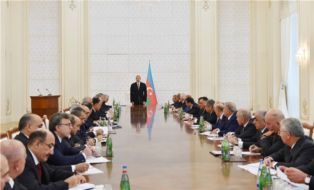 Bakanlar Kurulu toplantısında konuşan Aliyev, yılın ilk dokuz aylık dönemindeki sosyo-ekomonik gelişmeleri ve yeni yapılacak projeleri değerlendirdi. Ülkesinde transit imkanların genişlendirilmesi yönünde büyük projelerden söz eden Cumhurbaşkanı Aliyev, "Bakü-Tiflis-Kars demiryolu projesinde Azerbaycan tarafı tüm inşaat işlerini tamamladı. Güney Gaz Koridoru ile ilgili bu yılın dokuz ayında büyük mesafe alındı. Şahdeniz-2 yatağının işlenmesi ve TANAP projesinin gerçekleşmesi için ciddi adımlar attık." dedi.