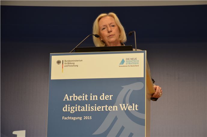 Berlin'de düzenlenen 'Dijital dünyada çalışma' sempozyumunda, Almanya Eğitim ve Bilim Bakanı Prof. Dr. Johanna Wanka, iş dünyasının hızla dijitalleştiğini ve bu süreçte çalışanların endişe duyduğunu ifade etti. Dijitalleşmenin getirdiği değişimlere uyum sağlamak için meslek eğitimine büyük önem verilmesi gerektiğini vurguladı. Bakan Wanka, Almanya'nın kalifiye çalışanlar açısından avantajlı bir konumda olduğunu belirterek, dijitalleşmenin merkezinde insanın bulunması gerektiğini söyledi.