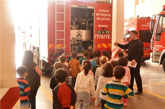 SAMSUN - Samsun Atakum Özel Feza Anasınıfı öğrencileri, itfaiye müdürlüğünü ziyaret ederek yangın anında neler yapılması gerektiği konusunda bilgi aldı.