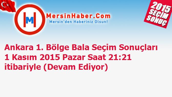 Ankara 1. Bölge Bala Seçim Sonuçları 1 Kasım 2015 Pazar Saat 21:21 itibariyle (Devam Ediyor)