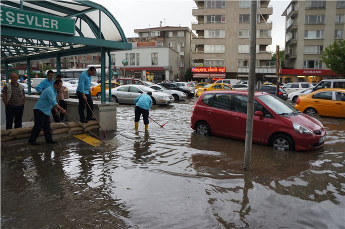 Beştepe Metro İstasyonu da yağmurdan etkilendi. Belediye ekipleri, sel sularının metro istasyonuna dolmaması için kum torbalarıyla önlem aldı. Birçok cadde ve sokakta araçlar ilerlemekte güçlük çekti.