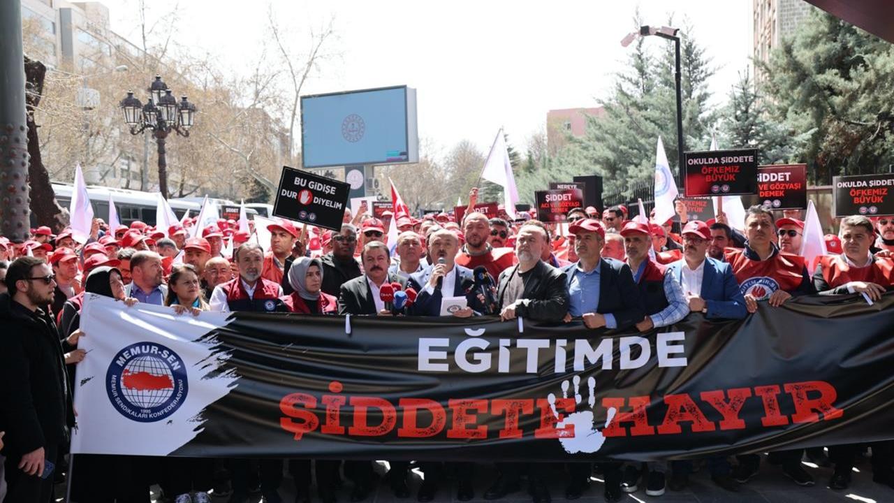 Eğitim-Bir-Sen üyeleri, Şanlıurfa’nın Siverek ilçesindeki Ahmet Koyuncu Mesleki ve Teknik Anadolu Lisesi’nde eski bir öğrenci tarafından gerçekleştirilen saldırıyı protesto etmek amacıyla Milli Eğitim Bakanlığı önünde toplandı. Burada grup adına açıklama yapan Eğitim-Bir-Sen Genel Sekreteri Talat Yavuz, eğitimcilere yönelik artan saldırılar ve bu durumun önlenmesi için alınması gereken önlemleri dile getirdi.