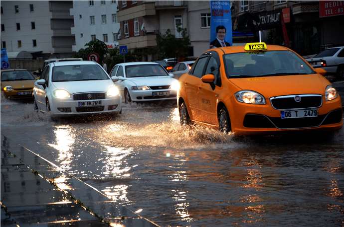 Ankara'da ikindi saatlerinde etkili olan sağanak yağış, birçok yolda su birikintileri meydana getirdi ve bu durum, sürücüler için büyük sıkıntılar yarattı.