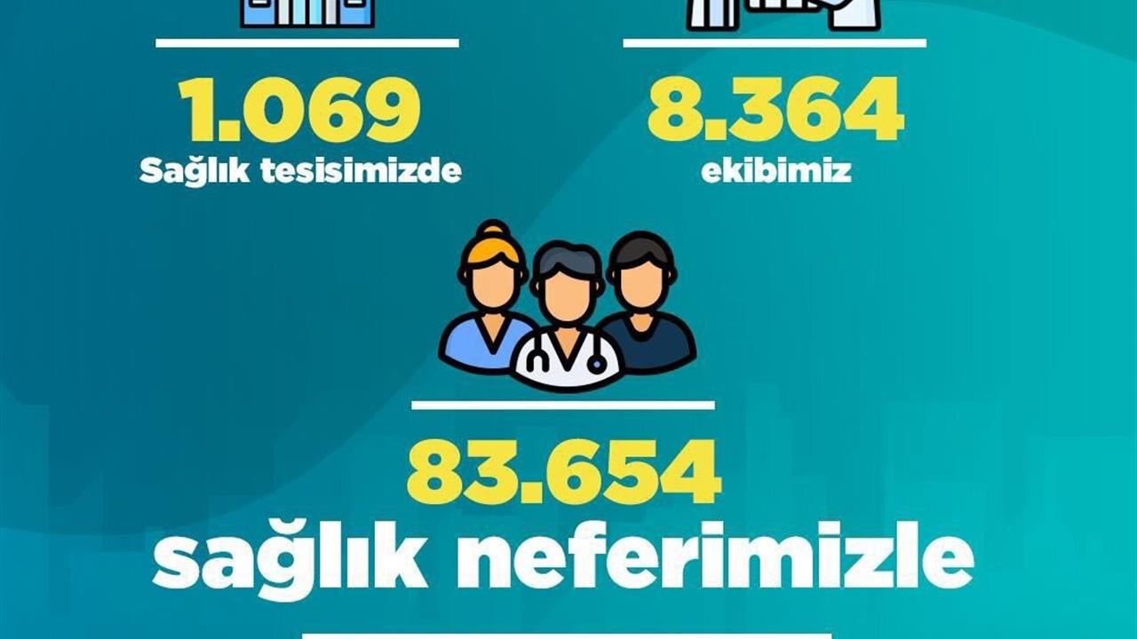 Bakan Memişoğlu, sağlık tesislerinin sayısının 1.069'a ulaştığını ve bu tesislerde 8.364 ekibin görev yaptığını açıkladı. Ayrıca, 83.654 sağlık neferinin de bu süreçte kesintisiz hizmet sunduğunu vurguladı. Acil sağlık hizmetleri için 25.524 personelin, evde sağlık hizmetleri için ise 4.796 personelin görev başında olduğunu belirtti. Bu ekiplerin büyük bir özveriyle çalıştığını dile getiren Bakan, vatandaşların sağlığı için gece gündüz demeden çalışan tüm sağlık çalışanlarına teşekkür etti.