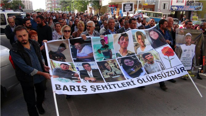 Paşaköşkü Mahallesi İsmet Paşa Caddesi’nde toplanan vatandaşlar, buradan başlattıkları yürüyüşü Milli Egemenlik Caddesi'ni takip ederek İnönü Caddesi PTT Müdürlüğü önünde tamamladı. ‘Yastayı, öfkeliyiz, isyandayız’ ve üzerinde patlamada ölenlerin fotoğraflarının bulunduğu ‘Barış şehitleri ölümsüzdür’ yazılı pankart açan grup ‘Katil devlet hesap verecek’, ‘Gün gelecek AKP halka hesap verecek’, ‘Yaşasın halkların kardeşliği’ şeklinde sloganlar attı.