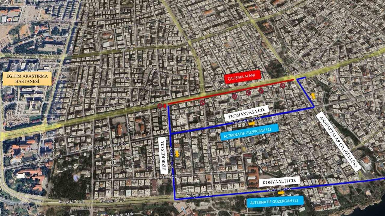 Antalya Büyükşehir Belediyesi Fen İşleri Dairesi Başkanlığı, 100. Yıl Bulvarı'nda asfaltlama çalışmalarına devam ediyor. Bu kapsamda, şehir merkezine gidiş yönündeki güzergâh üzerinde, Hızır Reis Caddesi ile Anafartalar Caddesi (Güllük Kavşağı) arasında yer alan yaklaşık 730 metrelik yol kısmında asfaltlama işlemleri gerçekleştirilecek. Çalışmalar 8 Mart Pazar günü saat 07.00 itibarıyla başlayacak ve bu bölüm araç trafiğine kapatılacak. Yoğun bir program dahilinde asfaltlama işleminin tamamlanmasının ardından, yolun 9 Mart Pazartesi günü sabah saat 06.00’da yeniden trafiğe açılması hedefleniyor. Sürücülerden, bu süre zarfında belirlenen alternatif güzergâhları kullanmaları rica ediliyor.