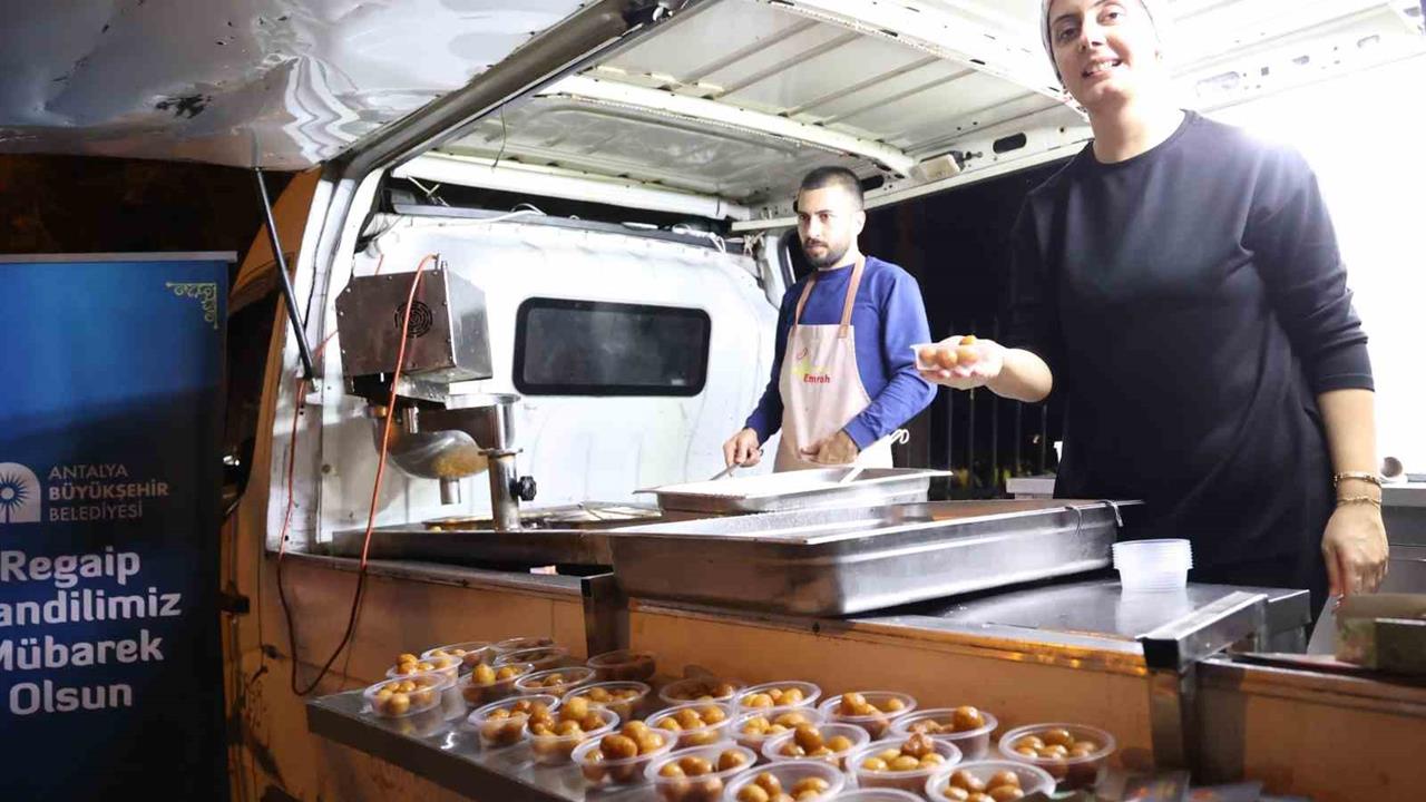 Antalya'da, Regaip Kandili vesilesiyle Büyükşehir Belediyesi tarafından düzenlenen ikram etkinlikleri, halkın yoğun ilgisiyle karşılandı. Muratpaşa ilçesinde, Muratpaşa Camii önünde gerçekleştirilen etkinlikte 3 bin 500 kişiye sıcak lokma sunuldu. Aynı zamanda, Kepez Uyaroğlu Camii önünde de bin 500 kişiye lokma dağıtıldı. Bu özel günde, özellikle halkın birbirine destek olma ve dayanışma duygusu ön plana çıktı.