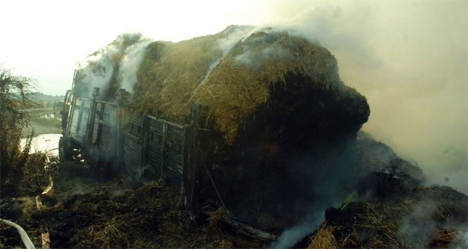 İtfaiye ekipleri yangını söndürdü, ancak saman balyaları için yangın devam etti. Antalya Büyükşehir Belediyesi'ne ait iş makinesi, kamyonun kasasında bulunan samanları yol kenarındaki sulama kanalına boşaltarak, yangının tamamen sönmesini sağladı. Yangın sırasında endişeli gözlerle olan biteni izleyen şoför Şentürk, yaşadığı olayın şokunu atlatmaya çalışıyor.