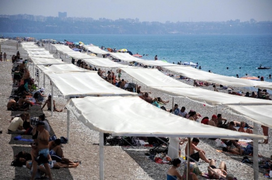Antalya Büyükşehir Belediyesi, geçen yıl halka ücretsiz olarak sunduğu Konyaaltı plaj ünitelerinde bu yıl yeni bir uygulama başlattı. Önceki yıl ücretsiz sağlanan şezlong ve şemsiyelerin kırılması ve geri getirilmemesi nedeniyle, bu yıl demir direkler üzerine çekilen brandalarla hizmet verilmeye başlandı.